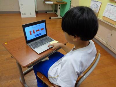 小学部1・2年生が、国語科「方向記号」の学習で、タブレット端末を使った「やじるしウォークラリー」を行いました。