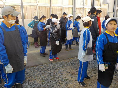 2月9日(金)5校時、中学部の総合的な学習の時間で地域の交流先に冬の花を届けました。