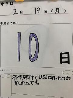 卒業式の練習も始まり、いよいよという気持ちになってきているようです。