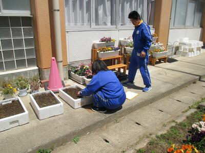 5月14日(水)生活科の時間に、アサガオとホウセンカの種をまきました。