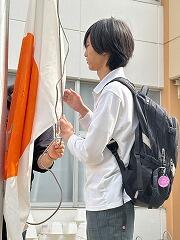 集会委員会に所属している生徒は、朝の時間に国旗を掲げる作業を行います。