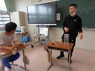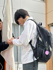 初めて行う生徒は、旗揚げの方法を教わりながら自分の力で仕事に取り組んでいます。