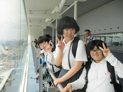 県庁では、エレベーターで25階まで行き、展望フロアから景色を眺めました。