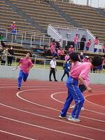 競技(徒競走、立ち幅跳び、ソフトボール投げ、フライングデイスク等)では、今までの練習の成果を十分に発揮することができました。最後の種目の4×100mのリレーでは、最後まであきらめない素晴らしい走りに、競技場には熱い声援が響きました。