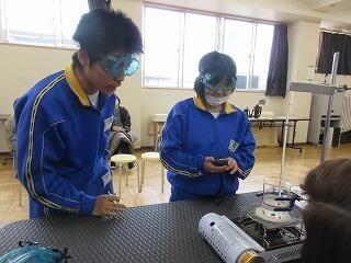 中学部 理科「姿を変える水」 投稿: 作成者 (02/10) カテゴリー: 授業の様子 2月6日(金)理科おじさんをゲストティーチャーにお招きして、「姿を変える水」の実験を行いました。 生徒たちは、協力して実験器具を準備しました。実験が始まり、ビーカーに入れた水が沸騰し泡立つ様子を真剣に観察する生徒の姿が印象的でした。 泡の正体が水であることを知り、多くの生徒たちが驚いていました。 Tweet -