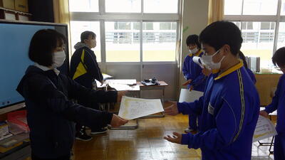 中学部 学部集会 投稿: 作成者 (16:30) カテゴリー: 今日の出来事 3月16日(月)2校時、匠班教室にて学部集会が行われました。 集会委員が司会進行をし、 1. 月のめあて 2. 月の予定 3. 今月の歌「旅立ちの日に」 4. 美術作品展の表彰 5. 先生の話 という内容で行われました。 表彰では少し恥ずかしげではありましたが、誇らしげな表情で賞状を受け取る姿が印象的でした。 生徒中心のすばらしい集会でした。 Tweet -