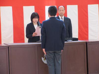 「修了証授与」では、各部の代表児童生徒が、立派な態度で修了証を受け取りました。