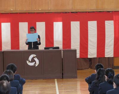 「校長先生のお話」では、この1年間の皆さんの頑張りを称賛し、今後も目標をもって成長していってほしいとの願いをこめたお話をいただきました。