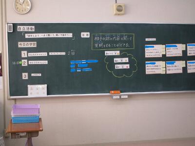 本校では、全ての教科等の学習において、「構造的な板書」について研修・実践に取り組んでいます。
